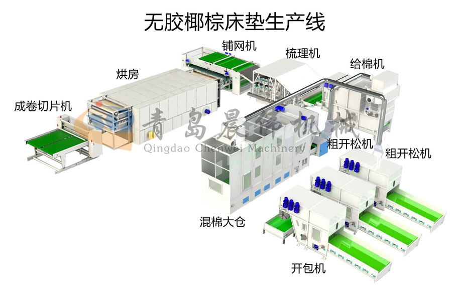 一、椰棕床墊生產(chǎn)線工藝流程: