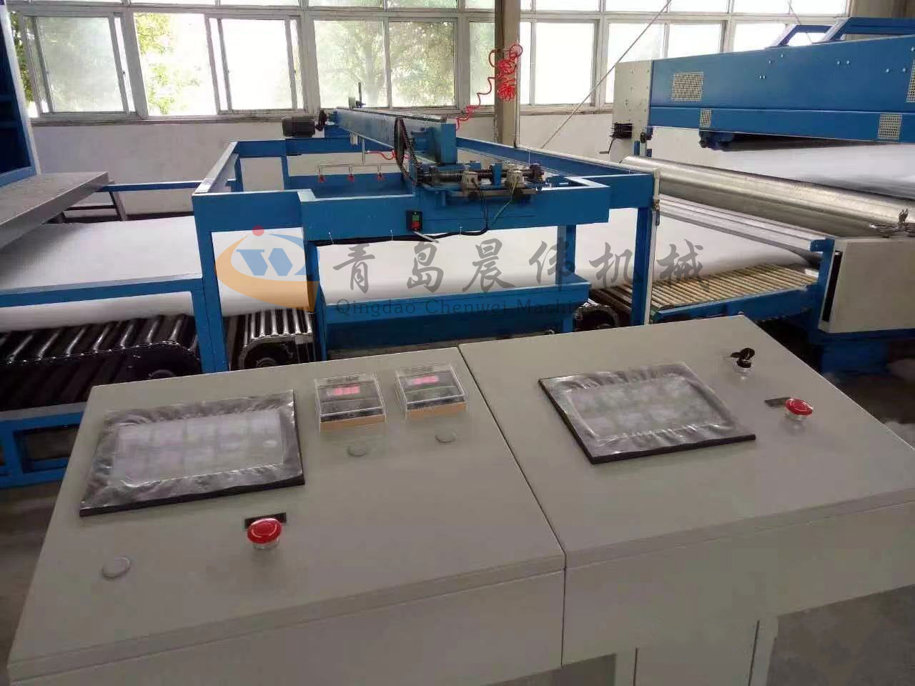 5. CWPW-鋪網(wǎng)機(jī):用于將梳理纖網(wǎng)通過移動(dòng)小車交叉折疊為所需幅寬和定量的多層纖網(wǎng),以供后道工序使用。鋪網(wǎng)輥采用特殊結(jié)構(gòu),加裝壓網(wǎng)輥和導(dǎo)流板,不飄網(wǎng)不起皺,五只大功率電機(jī)精確控制各部件的運(yùn)動(dòng),電動(dòng)輸出簾高度調(diào)節(jié)裝置