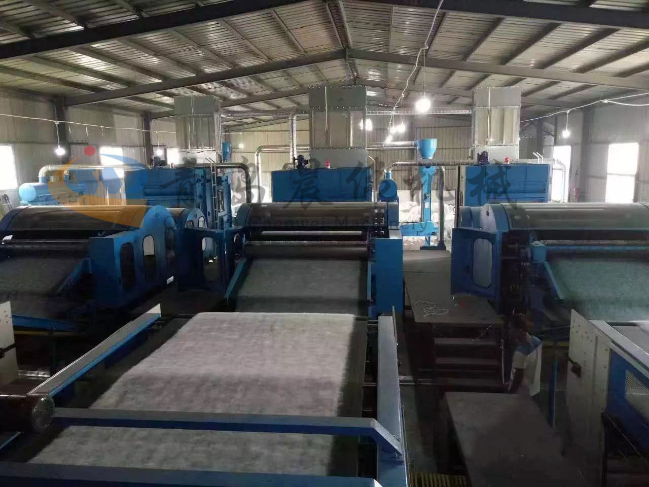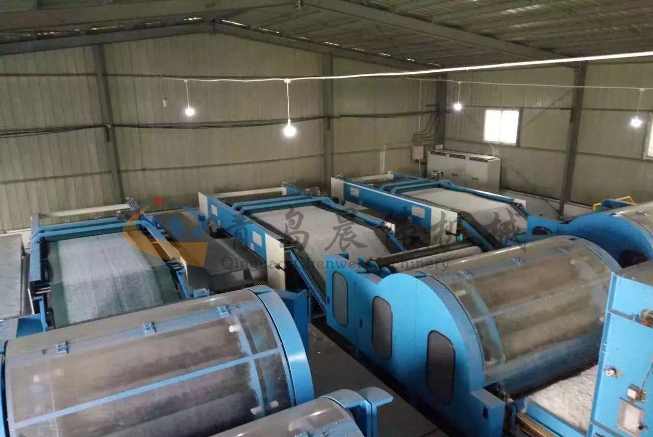 開包機-開松機-振動給棉機-梳理機-鋪網(wǎng)機-烘房-燙光機-成卷切片機