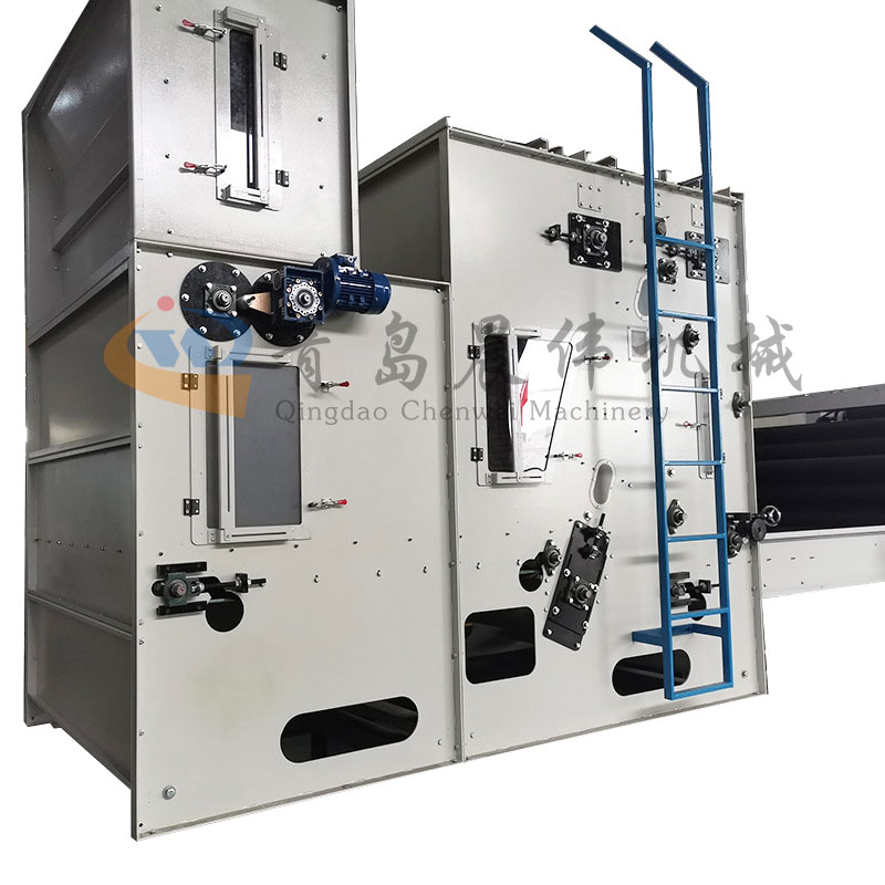 震動(dòng)給棉機(jī)將開松纖維進(jìn)一步混合,并通過震動(dòng)形式輸送出均勻的棉層供下一道工序使用.可用于滌綸,粘膠,尼龍,丙綸,玻璃纖維等多種纖維的給棉.